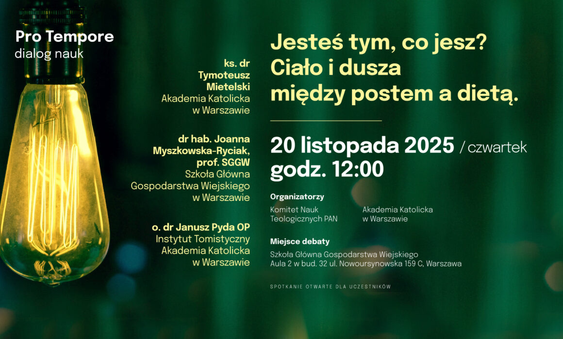 - Zapraszamy na debatę pt. „Jesteś tym, co jesz? Ciało i dusza między postem a dietą.”